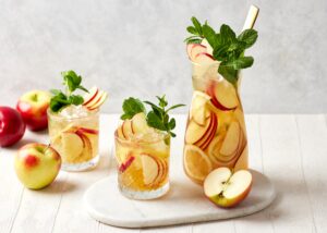 - Pour the dressing over the apple and orange salad and let sit for a few minutes.
